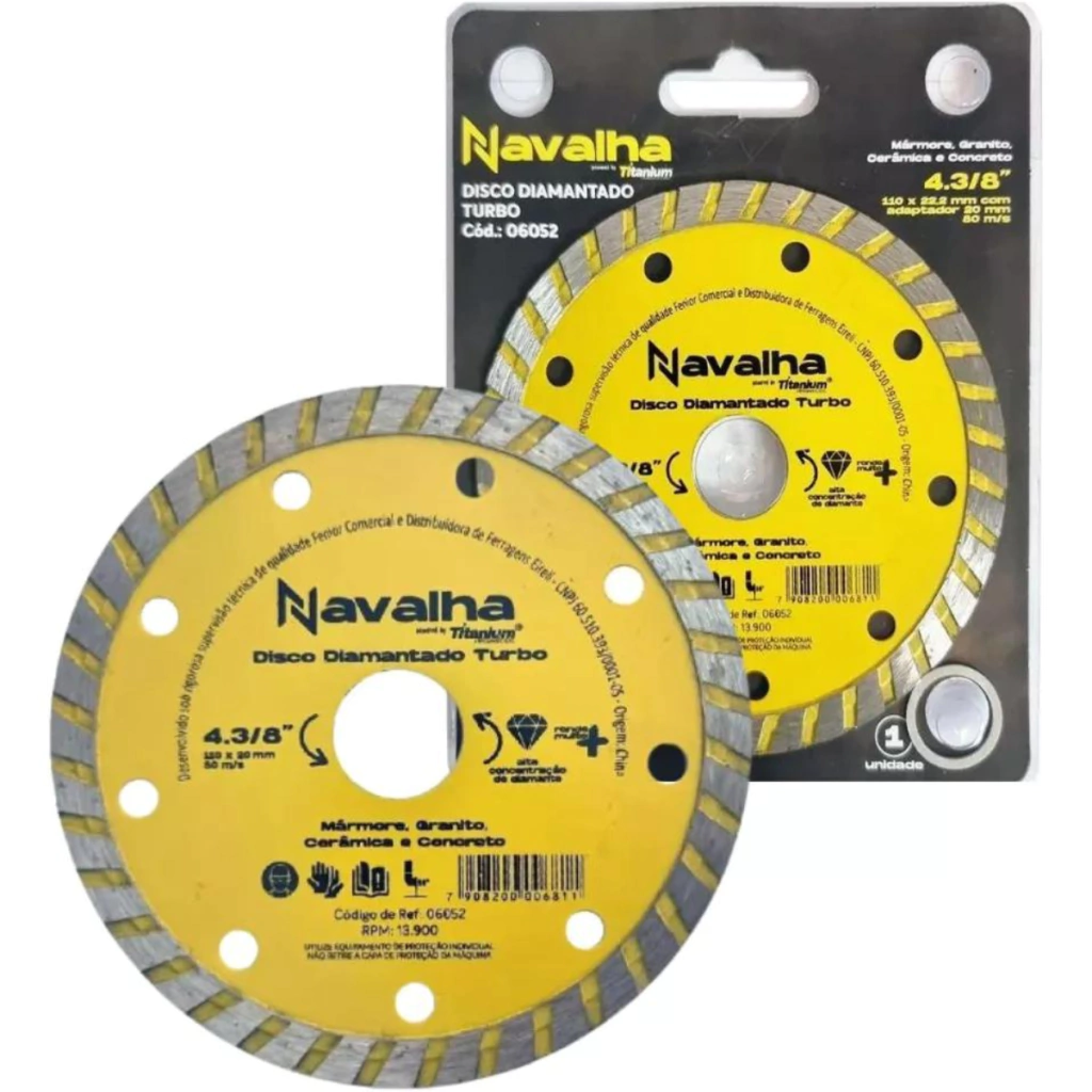 O Disco Diamantado Navalha/ Titanium 06052 é a escolha perfeita para profissionais que buscam precisão e durabilidade em seus trabalhos de corte. Com um diâmetro externo de 110 mm e diâmetro do furo de 20 mm, este disco versátil vem acompanhado de um anel redutor para 16 mm, aumentando sua compatibilidade com diferentes equipamentos.
