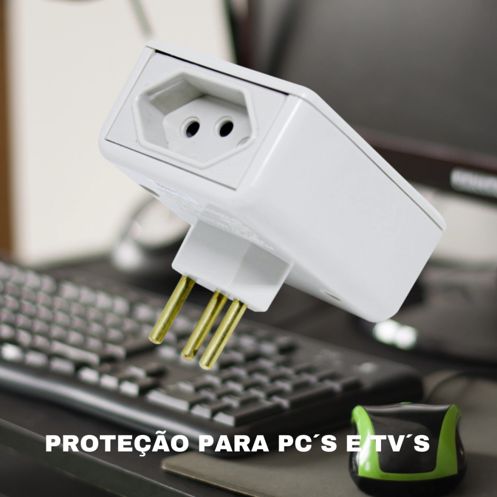 O Prote Raio Eletro foi desenvolvido para evitar que seus aparelhos eletro eletrônicos sejam danificados por surtos transitórios elétricos (efeitos de raios, picos de voltagem e distúrbios elétricos). (Mod.: 203 - 127V)