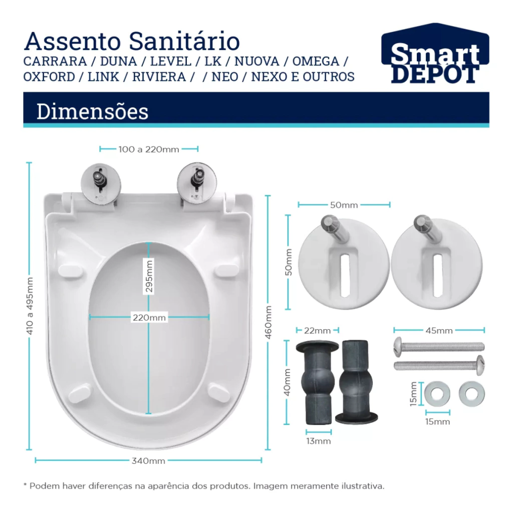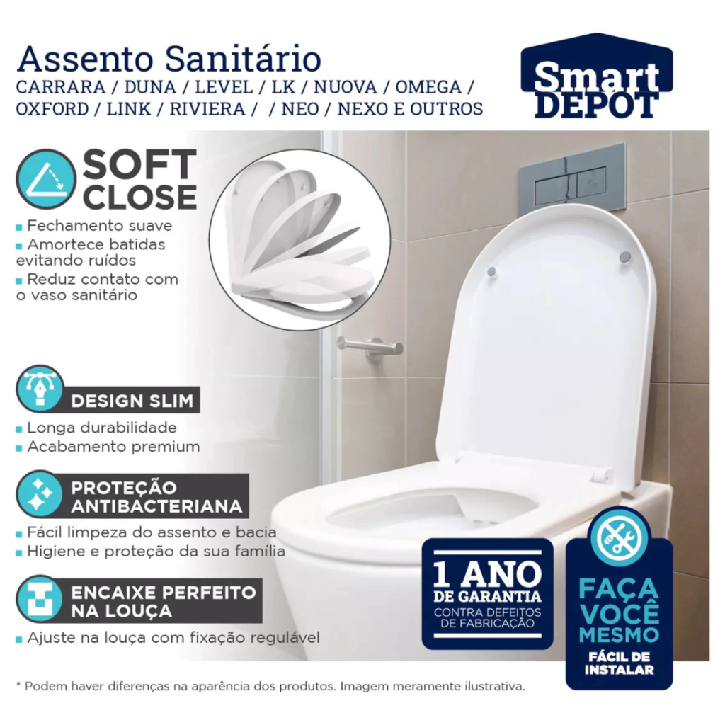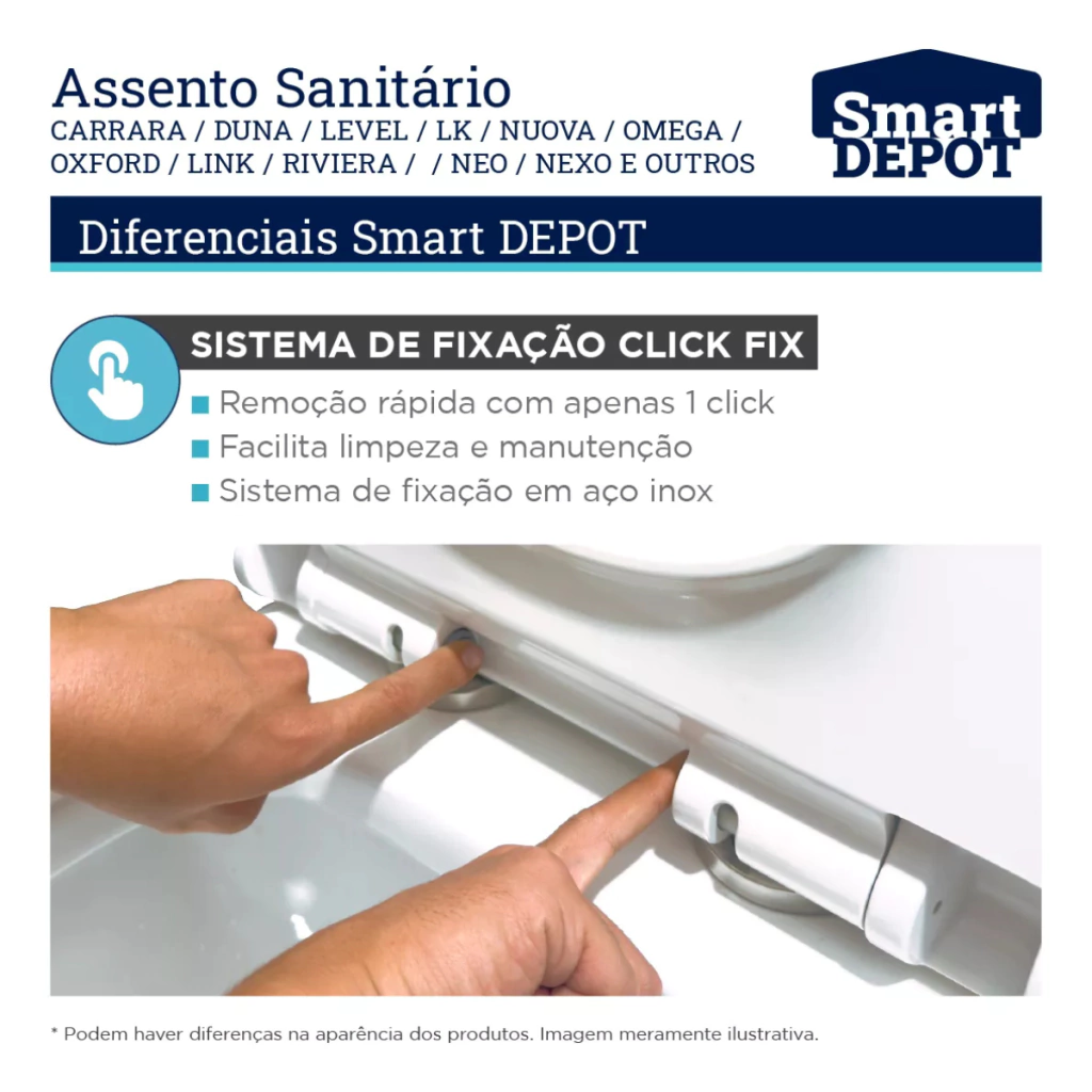 ASSENTO SANITÁRIO SOFT CLOSE (FECHAMENTO SUAVE) CLICK FIX (RETIRE COM UM CLICK) CARRARA/LINK/RIVIERA/SMART/NEO/NEXO - SMART DEPOT