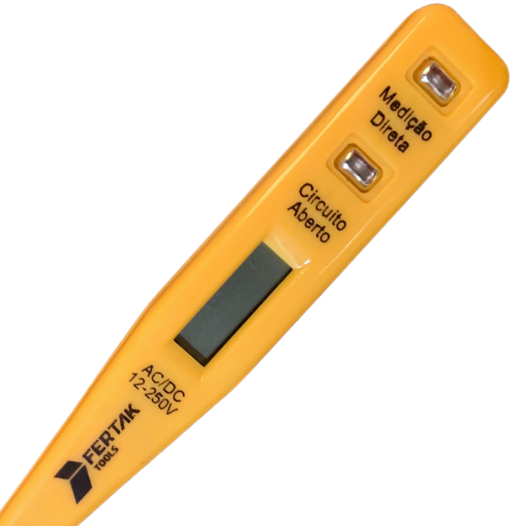 Aproximar a ponta de teste no cabo elétrico encapado e pressionar o botão “circuito aberto”, o display LCD indicará se o mesmo estiver energizado.