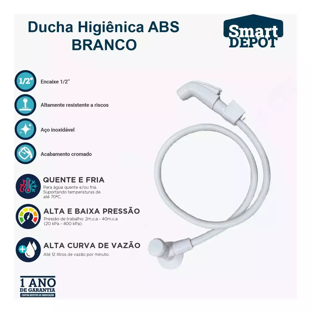 Ducha higiênica completa, fabricada em metal cromado com mecanismo 1/4 de volta cerâmico, trazendo mais praticidade e conforto ao abrir e fechar devido a forma de acionamento rápido e macio. Com fino acabamento, design em alavanca o produto conta também com mangueira de 1,20 metros revestida em aço inox com internos em borracha e terminais em latão, gerando mais flexibilidade de uso para o dia-a-dia.