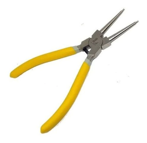 Alicate Flex, econômico, para colocar e retirar anéis de segurança (de retenção), em aço carbono forjado e temperado, revestimento em níquel, resistente a oxidação (ferrugem), cabo ergonômico, plástico especial para mais proteção e melhor aderência, mandíbula redonda,, alcança os anéis com facilidade, bico Redondo Fino, para anéis de retenção e travamento