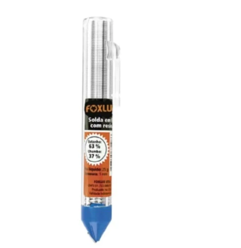 Solda Estanho tubo 1mm 63/37 Com 4mts fluxo resina 25g foxlux