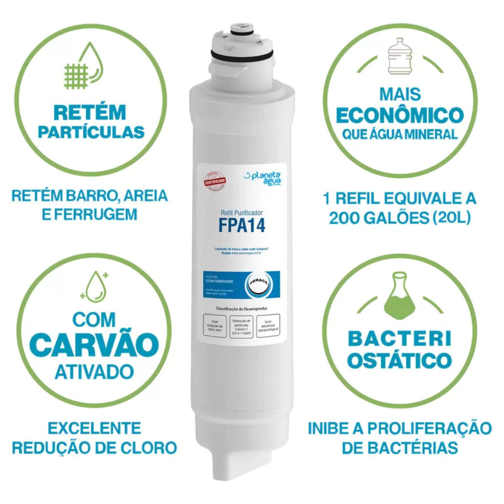 Mantenha sua água sempre pura e segura com o nosso refil compatível para os purificadores de água Electrolux PA21G, PA26G, PA31G, PE11B, PE11X, PC41B, PC41X, PH41B, PH41X, PE12A, PE12B, PE12G e PE12V. Certificado voluntariamente, este refil teve sua qualidade testada e comprovada, garantindo uma excelente redução de cloro e retenção de partículas indesejáveis como areia, ferrugem e barro. Além disso, ele é eficaz na inibição da proliferação de bactérias, assegurando água purificada, limpa e saudável para você e sua família.