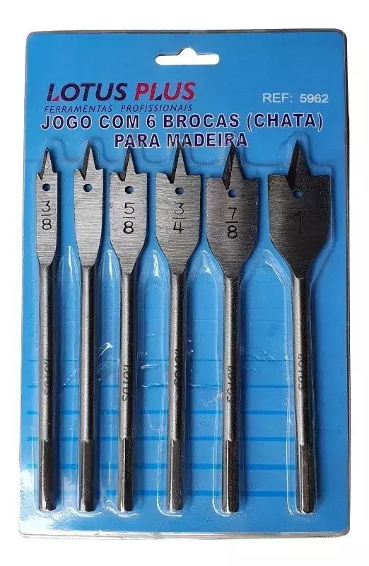 Jogo de Brocas Chata para Madeira 3/8 a 1" com 6 Peças