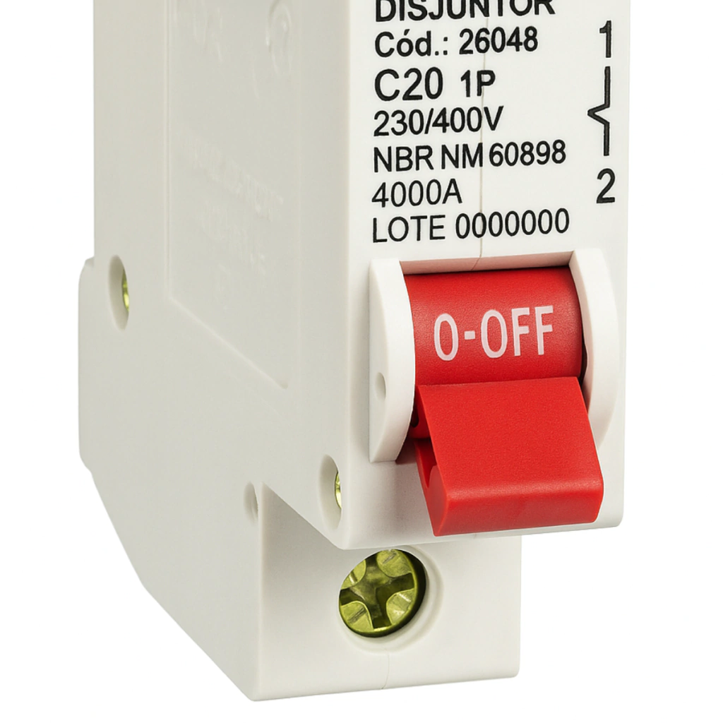 O disjuntor suporta tensões de 230V a 400V e frequências de 50/60Hz.