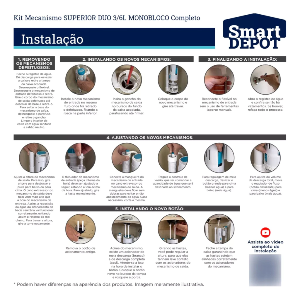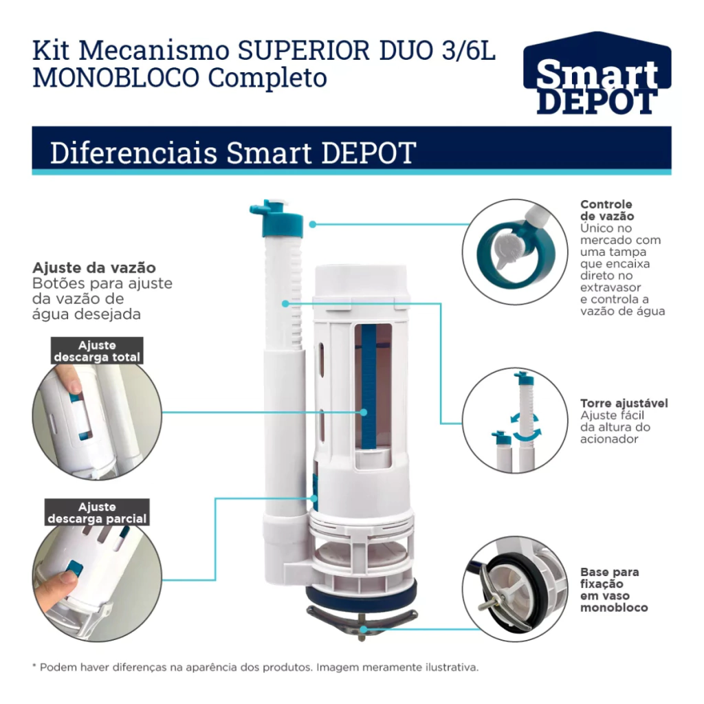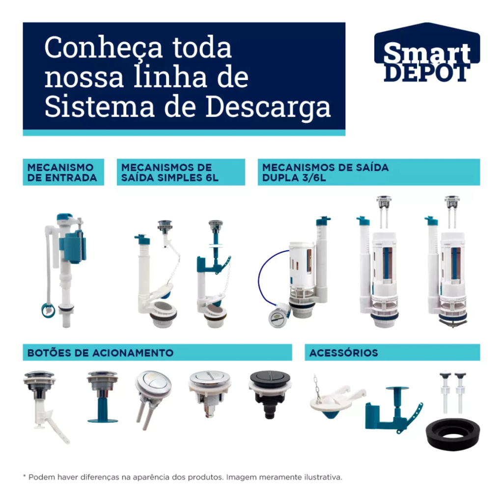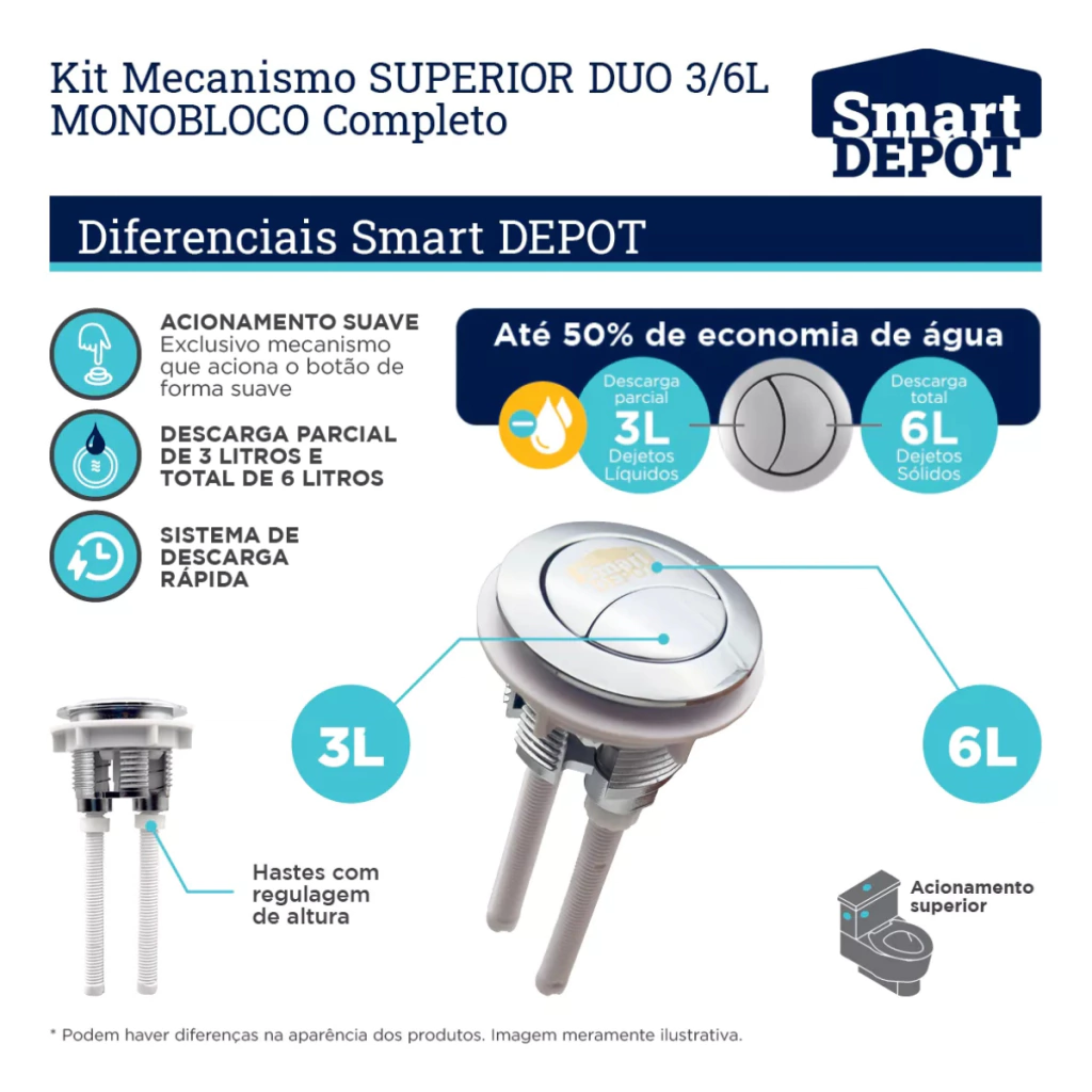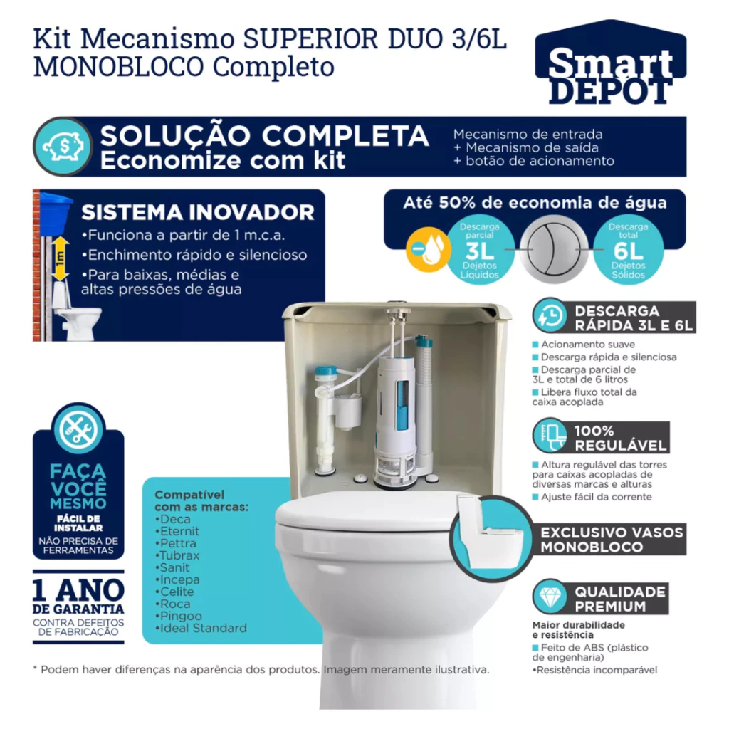 Kit Completo Mecanismo De Descarga Monobloco Duo 3/6L Com Botão Superior - Smart DEPOT