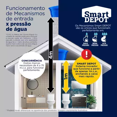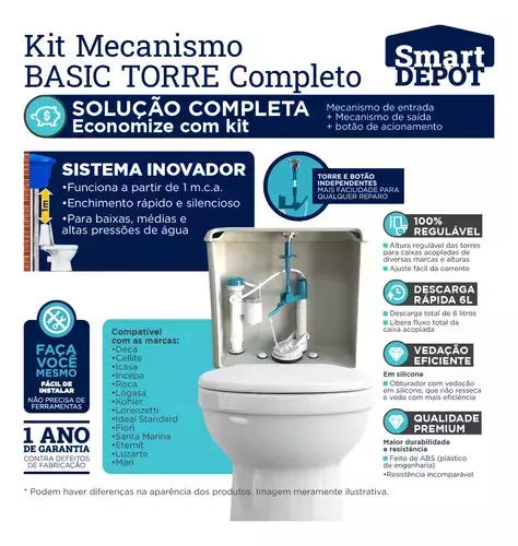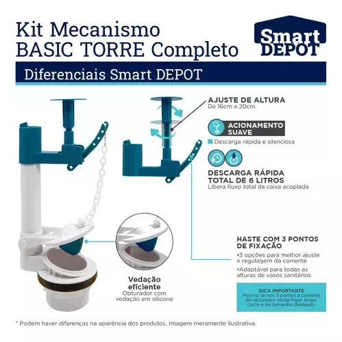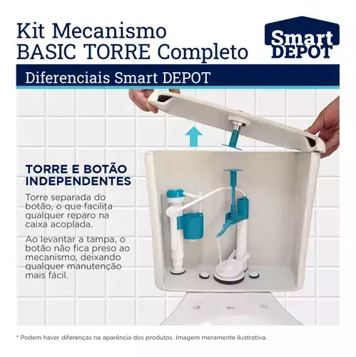 Kit Completo De Mecanismo De Descarga Com Botão e Torre - Smart Depot