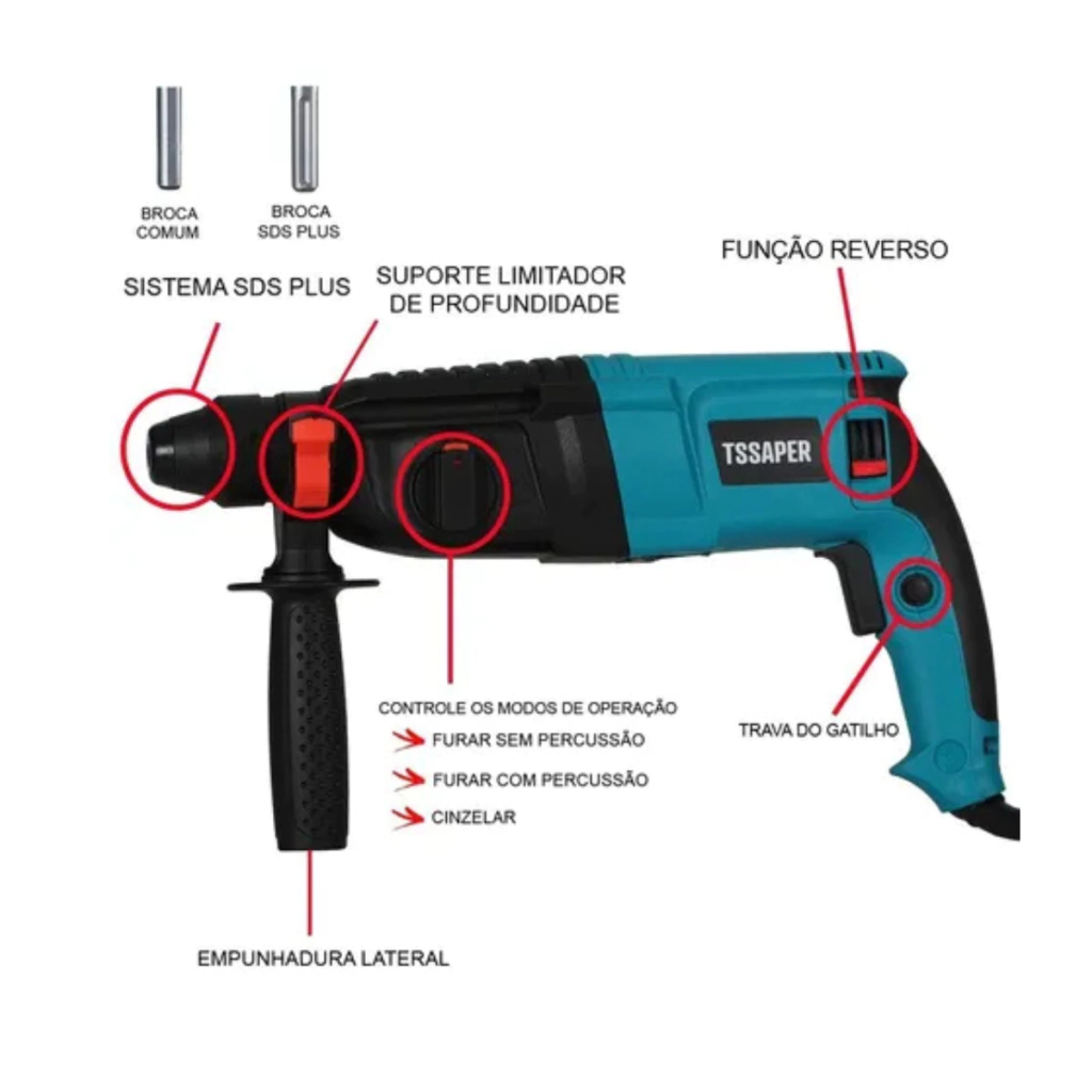 O Martelete perfurador rompedor TMA4J Tssaper é sinônimo de força e potência comprovada de 960W.