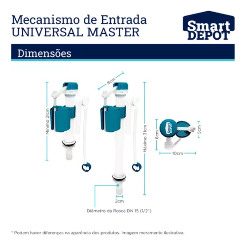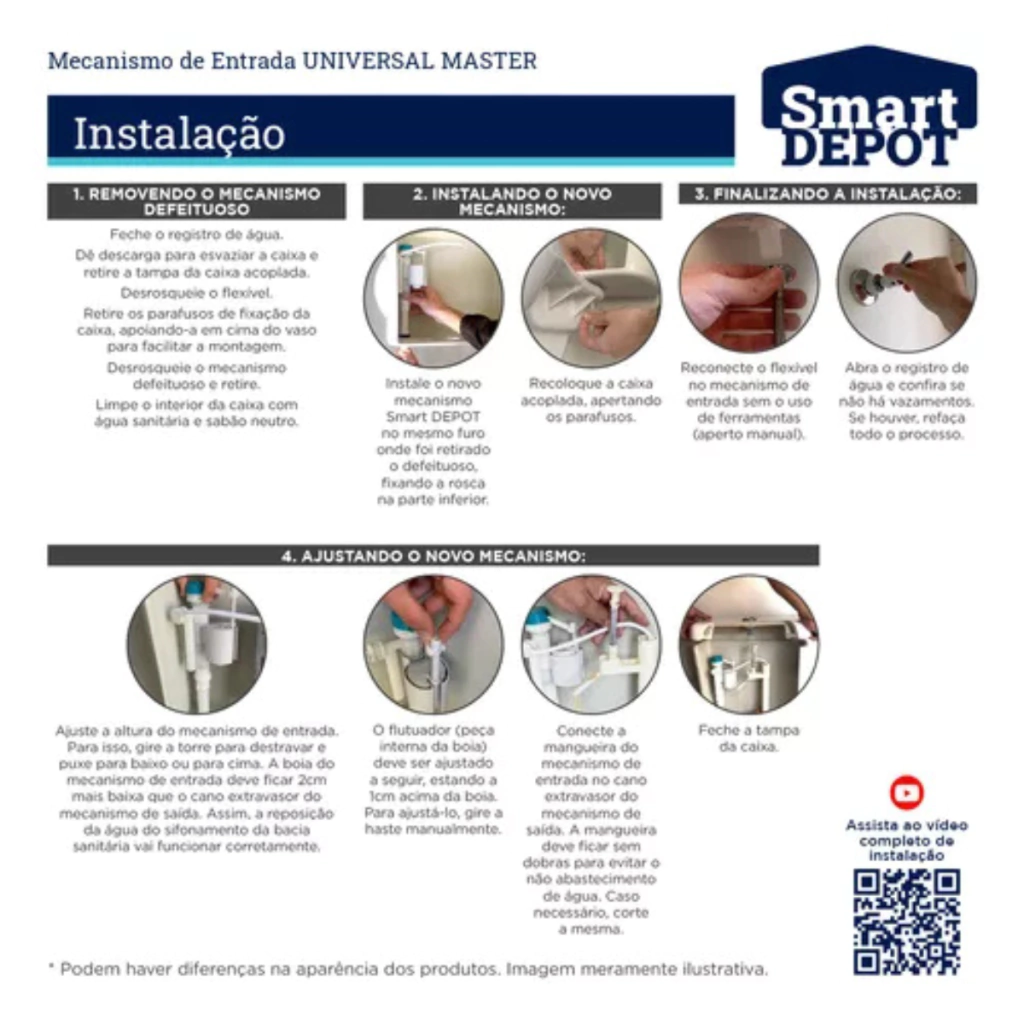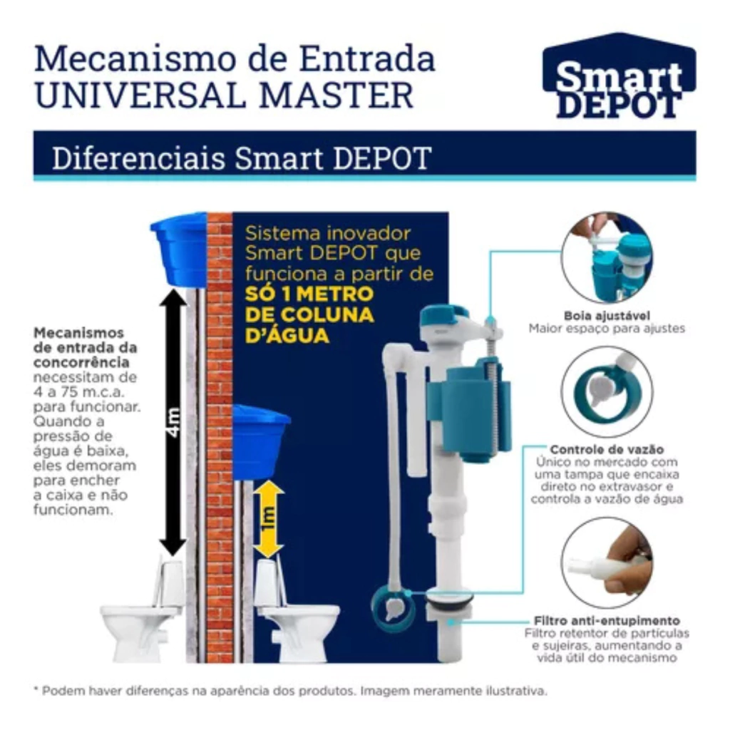 Se preferir, vendemos os Kit Reparo Mecanismo Caixa Acoplada Completo BASIC Universal Smart DEPOT e Kit Mecanismo Caixa Acoplada Completo Duplo 3/6litros Universal com SmartDEPOT botão controle de água 3 e 6 Litros.