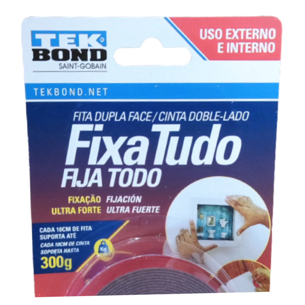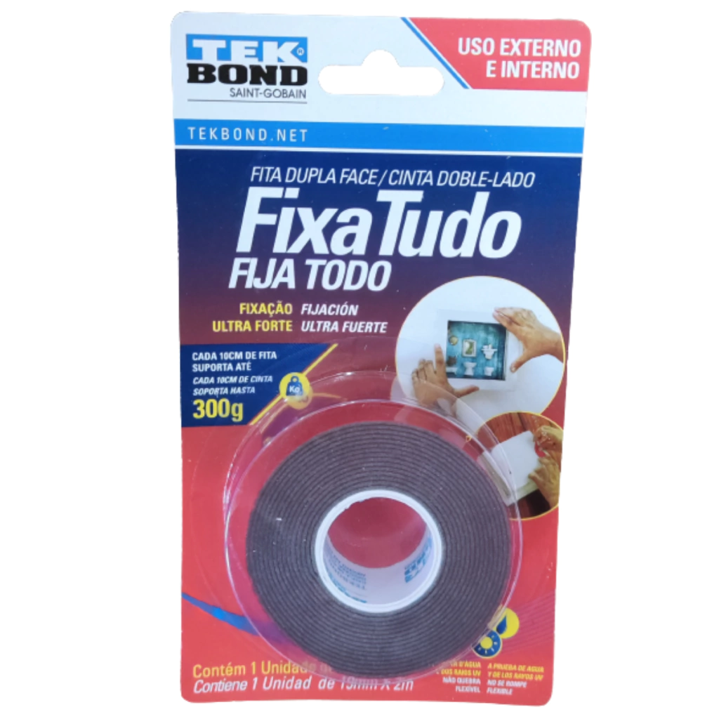Fita Fixa Tudo é uma fita acrílica indicada para promover fixação ultra forte de maneira fácil, rápida e segura. Adaptada ao uso interno e externo, resiste aos efeitos da água e raios UV. Permite pendurar quadros, objetos de decoração, canaletas, entre outras peças. Adere em várias superfícies, como madeira, parede, vidro, acrílico e metal.