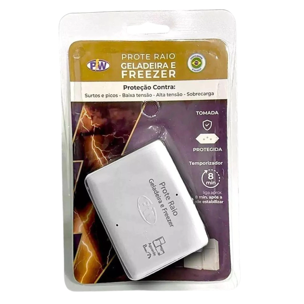 O ProteRaio Geladeira e Freezer foi desenvolvido para evitar que seus aparelhos eletroeletrônicos sejam danificados por surtos transitórios elétricos (efeitos de raios, picos de voltagem e distúrbios elétricos). O Prote Raio Freezer é dotado de micro circuitos que desligam seu aparelho em caso de baixas e/ou altas voltagens e aciona um temporizador que aguarda aproximadamente 8 minutos, tempo necessário para que o compressor atinja o equilíbrio, evitando desta forma forçá-lo e garantindo maior vida útil e durabilidade. (Mod.:205 - 127V)